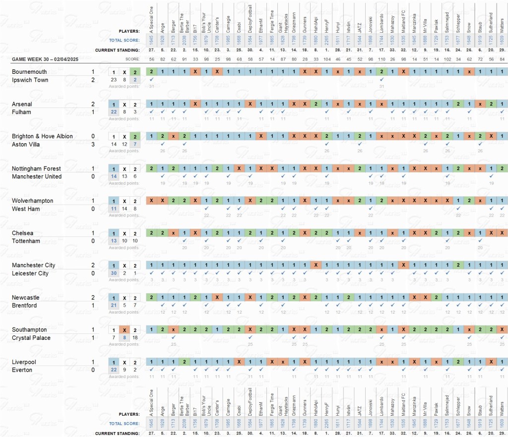 2020-21CosmoTippingComp 2024/25 – Round 30 – Good luck! Share this: Click to share on X (Opens in new window) X Click to share on Facebook (Opens in new window) Facebook More Click to print (Opens in new window) Print Like Loading... Standard