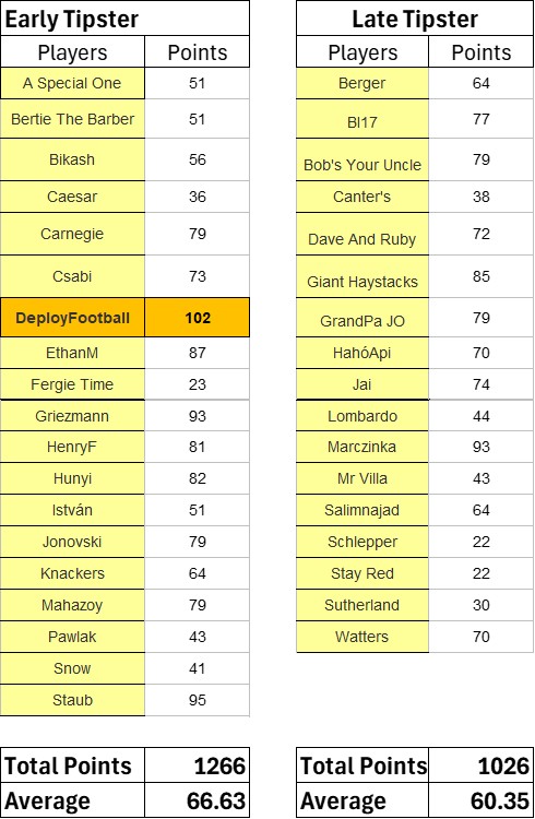 Round 4, 13 September games. Winner: DeployFootball, 102 points, 8 correct tips. They put their tips in early.